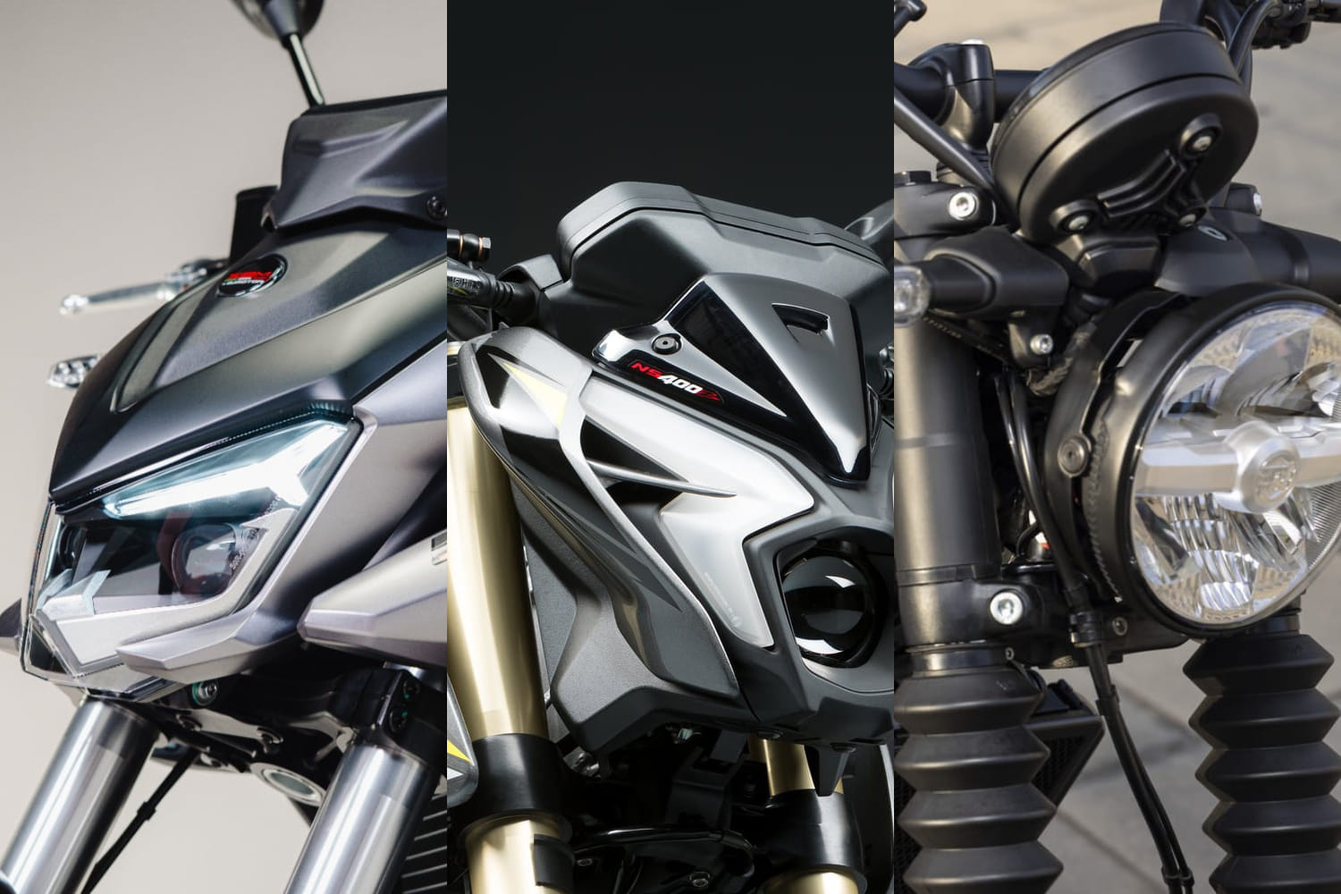 Recentemente foram lançadas em nosso mercado a Bajaj Dominar NS400Z, a Royal Enfield Guerrilla 450, e a SBM 400s, todos modelos de média cilindrada com potência na casa dos 40 CV.