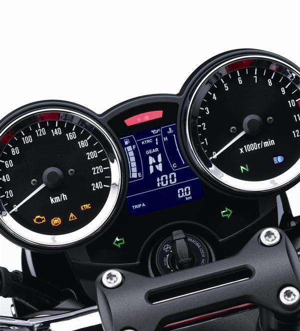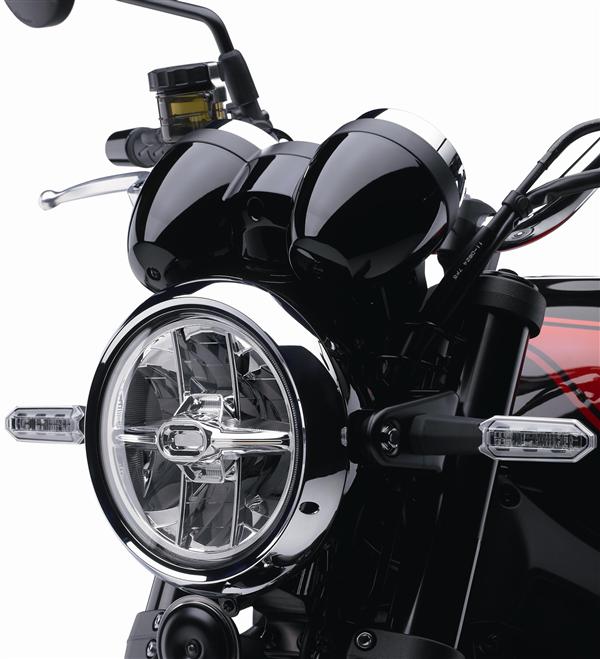 A Z900RS traz elementos da clássica Z1, como cores, tanque de combustível, farol, lanternas, painel de instrumentos, espelhos e escapamento.