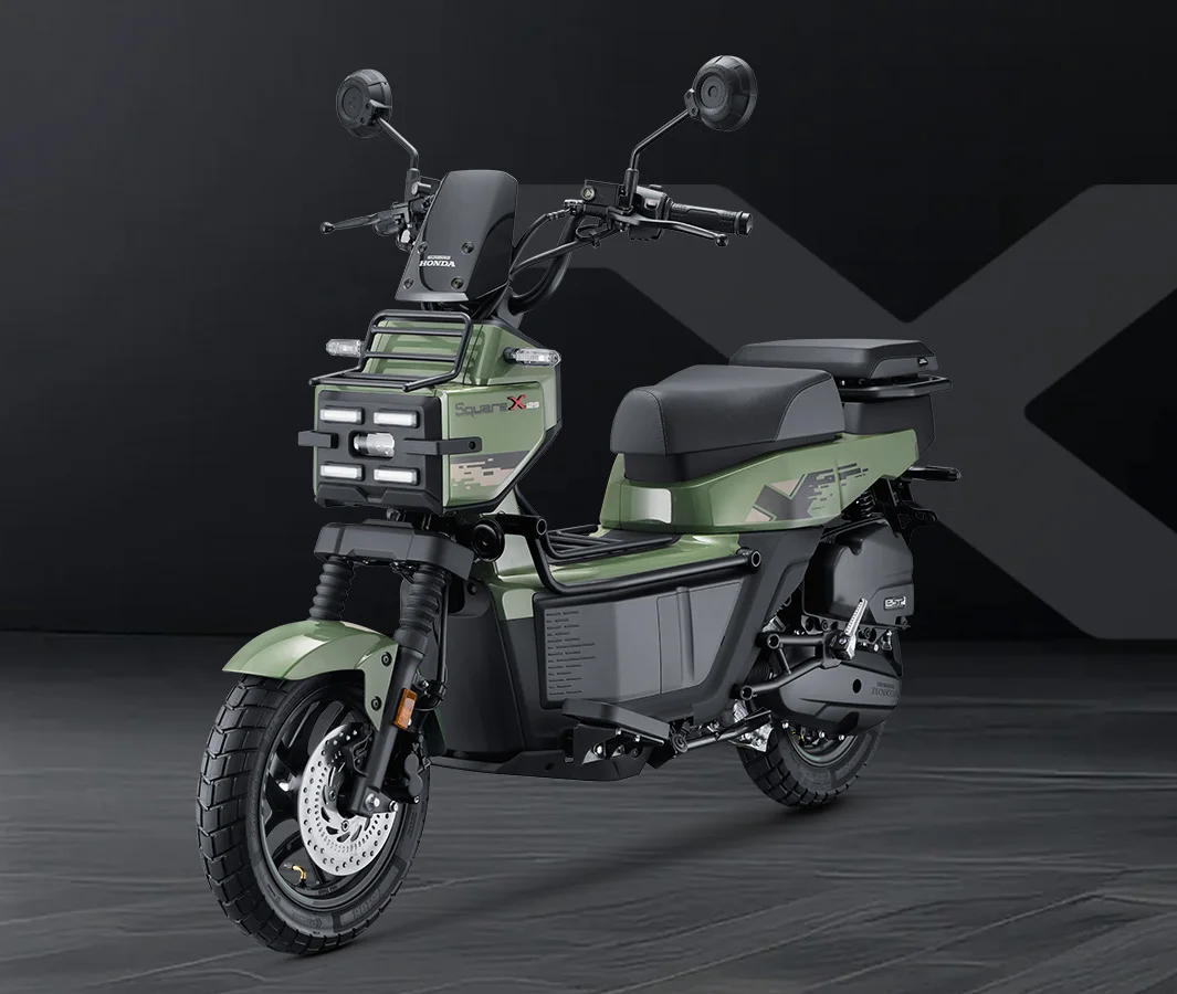 Chamada de SquareX125, o modelo traz design que traz linhas retas, superfícies planas e um visual quase industrial, que deixa claro que essa scooter foi pensada como ferramenta.