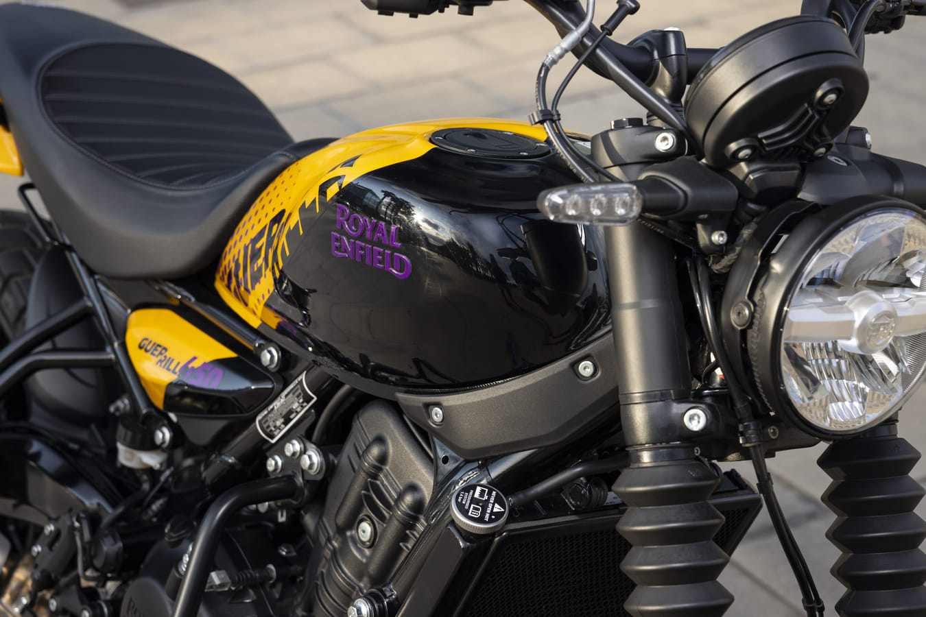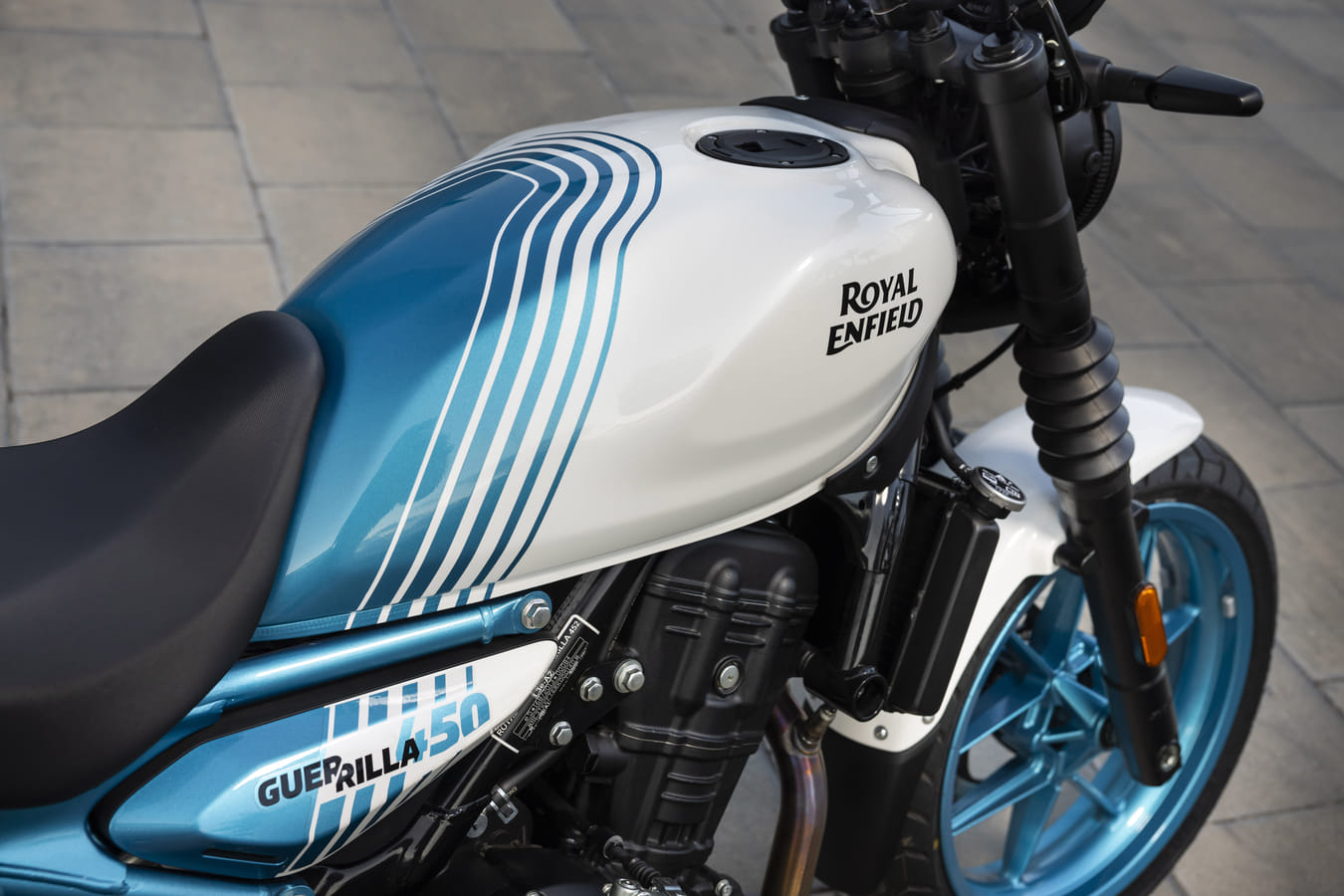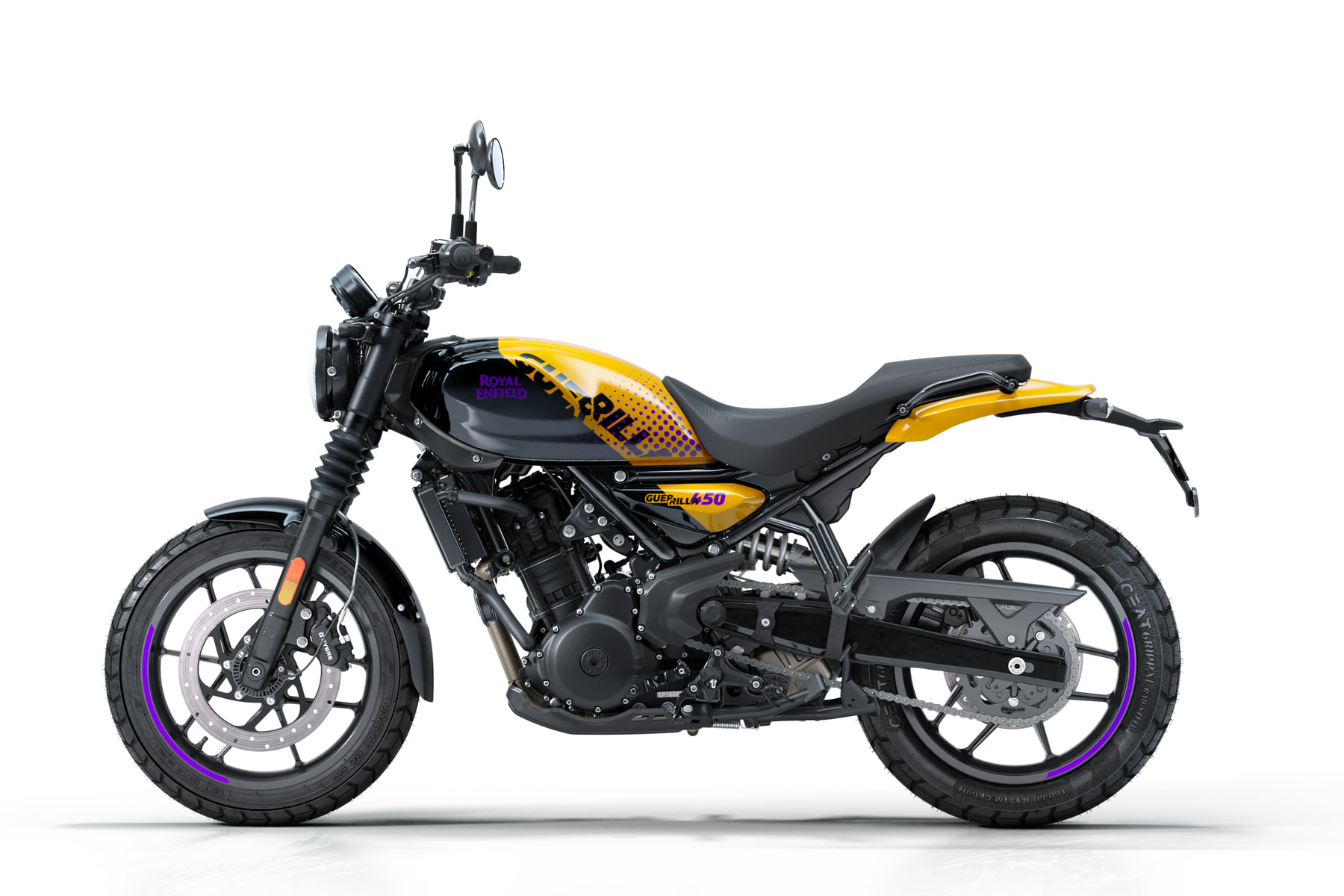 A Royal Enfield Guerrilla 450 possui motor de 452 cm³ com potência de 40 CV e consegue atingir a velocidade máxima Top Speed de 160 km/h.