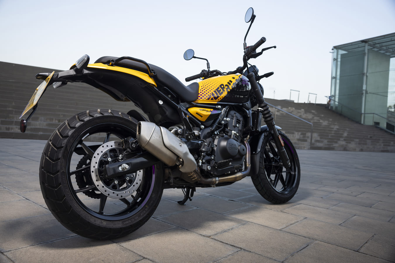 Um dos destaques dessa nova moto é seu design simples e sem carenagens, que deixa a maior parte do quadro e motor expostos. Em uma das versões, o subquadro traseiro é pintado com uma cor contrastante, deixando-o ainda mais em evidência.