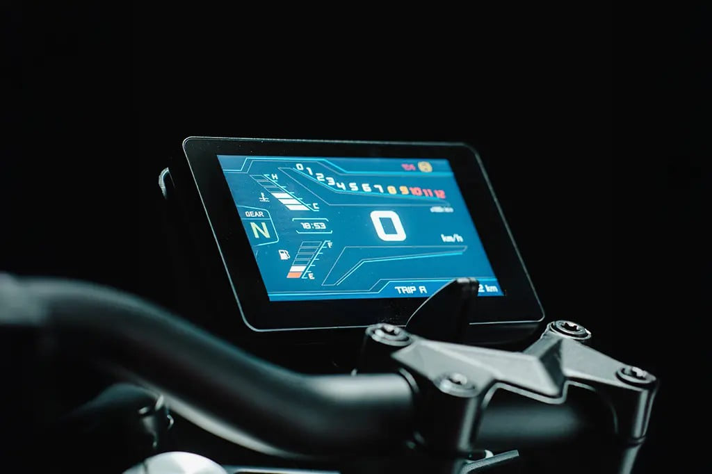 O modelo conta com painel TFT, suspensão invertida, freios ABS de dois canais, iluminação Full-LED, banco bipartido e porta USB.