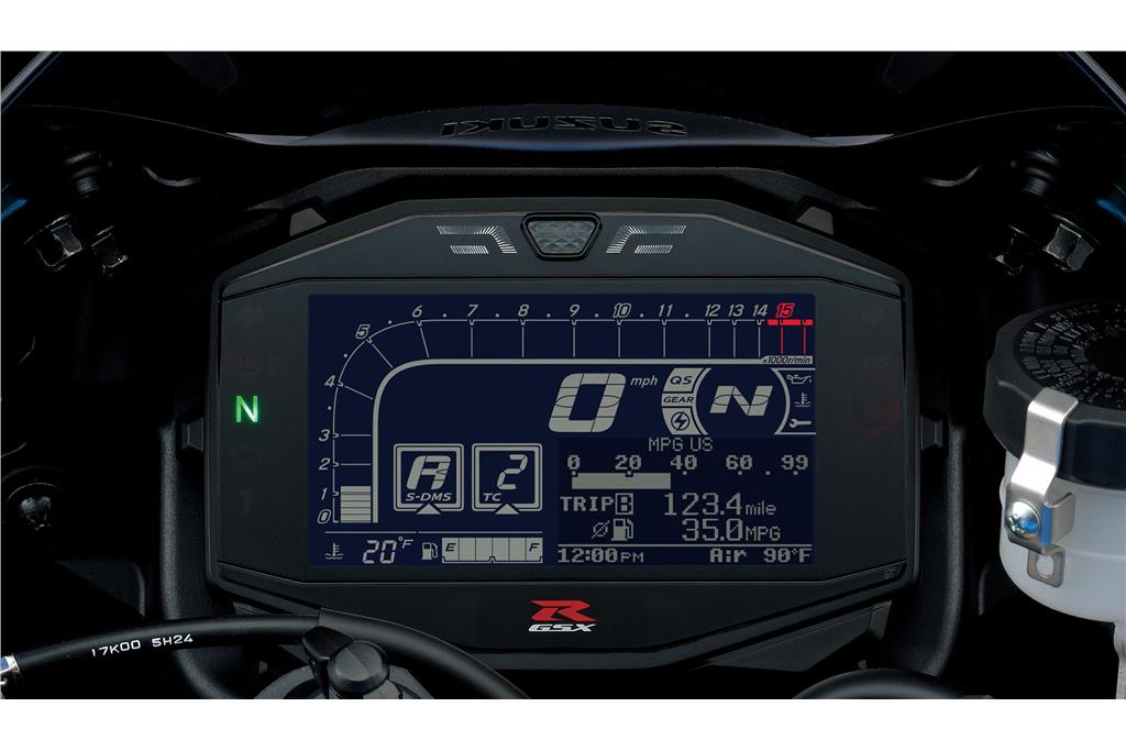 A GSX-R1000R 2018 possui um motor de 4 cilindros em linha de 999 cc, 202 cavalos de potência máxima e 11,8 kgfm de torque. A velocidade máxima oficial é de 300 km/h. A capacidade do tanque de combustível é de 16 litros e o peso em ordem de marcha (com combustível, óleo e fluidos) é de 202 kg.
