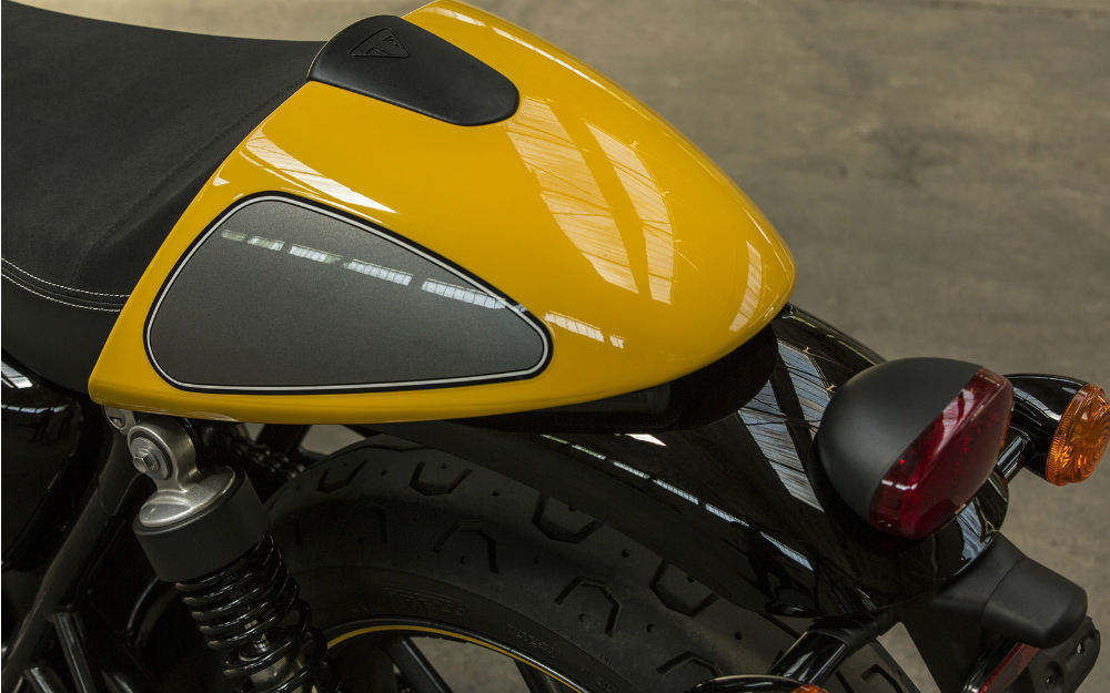 De acordo com a Triumph, “a Street Cup é o mais novo membro da família Street. Concebida a partir do estilo despojado da Street Twin, a moto possui uma atitude “street racer” incrível, trazendo também os detalhes da carenagem reduzida e os acabamentos contemporâneos da Street Twin, junto com uma nova gama de características esportivas urbanas, como um assento bullet original e um monoposto removível café racer.